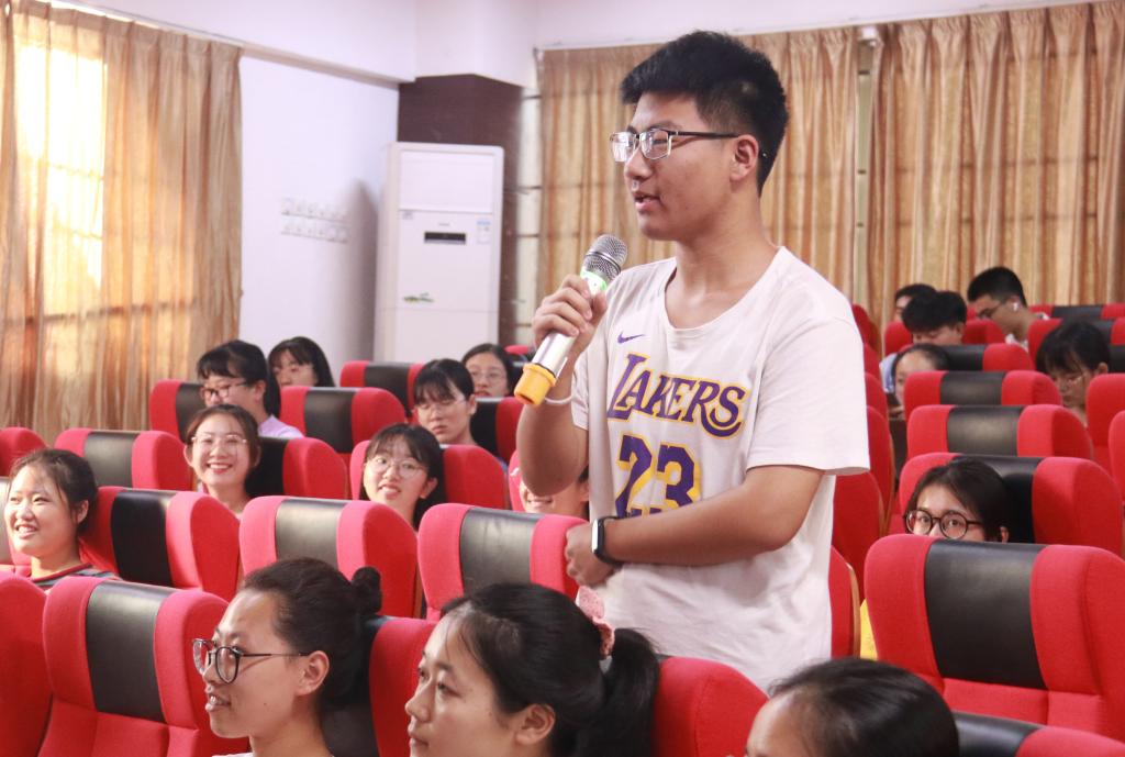 2017级汉语国际教育的蔡江林同学分享了自己学习和处事的经验体会,强调了自我定位和自我认知的重要性,建议新同学们把握好大学时光。2018级汉语言师范3班的潘琳同学着重分享了如何平衡课内外活动时间,以及多方面培养自己的能力的心得。2018级汉语言师范5班的卢宏亮同学主要从写作方面给新同学一些建议,建议大家坚持自己的兴趣,多加练习。2018级汉语国际教育的杨欣鑫同学简要阐述如何确定未来方向及探索前行。2019级汉语言师范1班的韦嘉同学介绍了自己如何在学习和工作之前进行准备和规划。发言结束后,新老生进行交流互动。