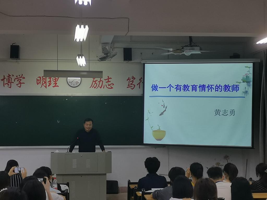 11月18日晚上,福建省漳州市第一外国语公司(漳州八中)董事长、漳州市初中语文名师工作室领衔人、特级教师、正高级教师黄志勇应公司邀请,在博东109教室为pa娱乐游戏师生作了一场题为“躬行践言、笃行求知——做一个有情怀的教师”的讲座,本次讲座由代顺丽教授主持。