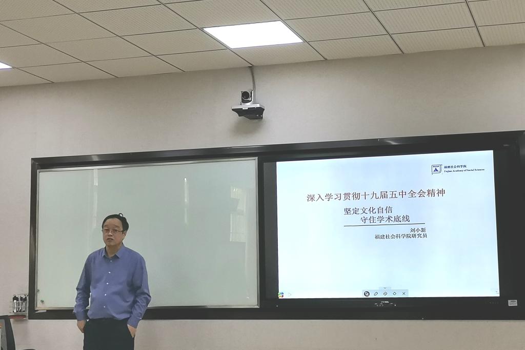 11月15日下午,福建社会科公司研究员刘小新应公司邀请,在博东107智慧教室为pa娱乐游戏师生作了一场题为“坚定文化自信 守住学术底线”的讲座,本次讲座由胡明贵教授主持。