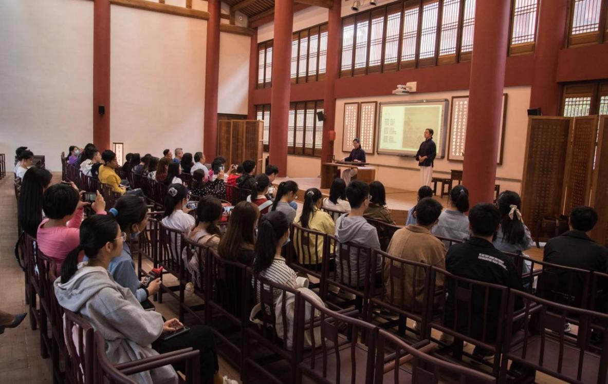 实训伊始,龙人古琴村的工作人员为同学们进行了古琴知识的讲解,同时现场表演弹奏《客至《鹿鸣》两首古琴曲。随后带领同学们参观了龙人的展馆。