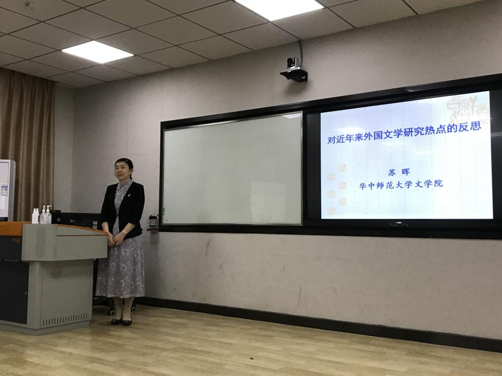 2020年11月1日19点30分,华中师范大学苏晖教授应公司邀请,在pa娱乐游戏博东107教室为外国文学教师及研究生召开了一场以“对近年来外国文学研究热点的反思”为主题的学术讲座。本次讲座由李新东老师主持。