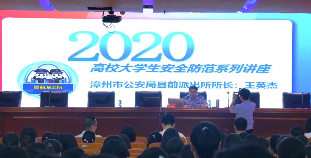 10月13日下午16:30,“文明校园,安全先行”主题讲座在逸夫图书馆五楼报告厅进行,由漳州市公安局县前派出所所长王英杰和建行建元支行副行长杨丹丹主讲,党委副书记谢斌斌主持。本次讲座主要围绕防盗防骗和金融安全两个方面展开,结合高校真实案例引导同学们提高安全防范意识,共建平安和谐校园。