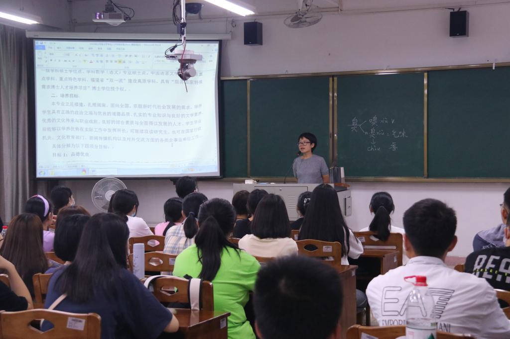 10月14日下午,pa娱乐游戏副经理杨杏红和系主任肖模艳分别于博东402和博东108教室分别讲解了汉语言文学和汉语国际教育专业的人才培养方案,明确培养目标以及毕业要求,加深了新生对本专业的理解,为接下来的学习生活指明了方向。