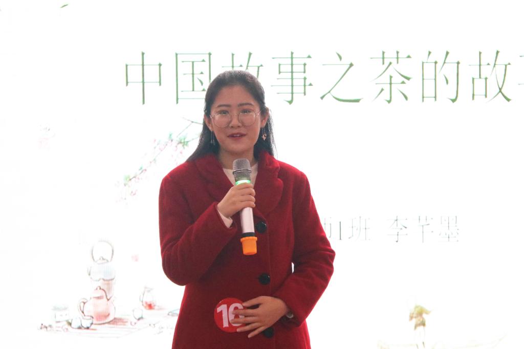 经过初赛选拔,共有16位选手晋级决赛。选手们依次讲出各具特色的中国故事,如“长征精神孕育不朽民族气概”“江湖诗篇寄托侠之情怀”“传统茶香滋润生命”等。参赛选手演讲声情并茂,引人入胜。王学伍、肖模艳两位分别进行点评,指出不足并提出建议。经过激烈角逐,李芊墨获一等奖,张雨豪、陈铠妮、郑丹妮获得二等奖,杨真、詹诗婷获得三等奖,潘琳、齐昕筠、张佳路、李龙燕、周诗璇、汤奕琦、钱淑婷、郝晋、刘娴、许泷文等人获得优秀奖。