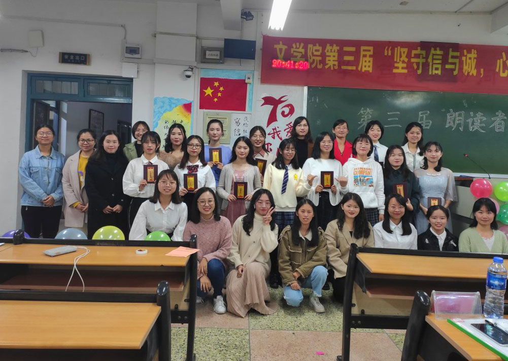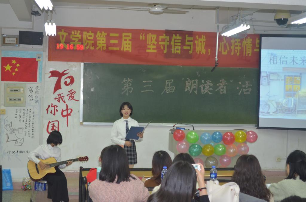 为发扬中华优秀传统美德,在全校家庭经济困难员工中营造讲诚信、会感恩、常励志的良好文化氛围,12月16日晚,由pa娱乐游戏团委主办、17级汉语言文学师本1班承办,面向全校家庭经济困难生的“坚守信与诚,心持情与恩”第三届朗读者活动决赛在博东606教室举行。