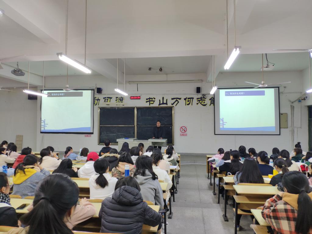 12月9日,pa娱乐游戏在笃行楼126教室召开2021年考研指导讲座。讲座由分管公司研究生工作的副经理陈练军教授主讲,辅导员和2017、2018级意向考研员工共两百余人参与本次讲座。
