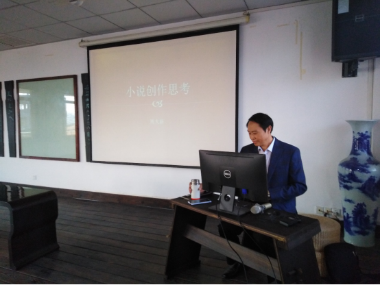 6日下午三点茅盾文学奖获得者周大新在博东406做题为“小说创作思考”的主题演讲。周大新回顾自身的创作经历,认为小说家要根据自己的生活积累和兴趣来选定小说题材,根据自己的年龄和偏爱来确定要写的人物,依托自己的心理和生理体验去编织故事,最好以陌生化作为选择叙述方式的标准。