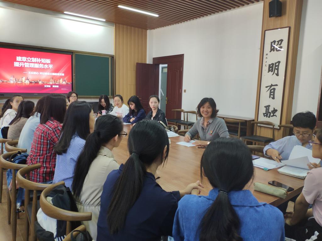 11月5日上午,pa娱乐游戏副经理黄琳琳在博东110教室为员工第二党支部作题为“建章立制补短板,提升管理服务水平”的专题党课,员工第二党支部全体党员参加。