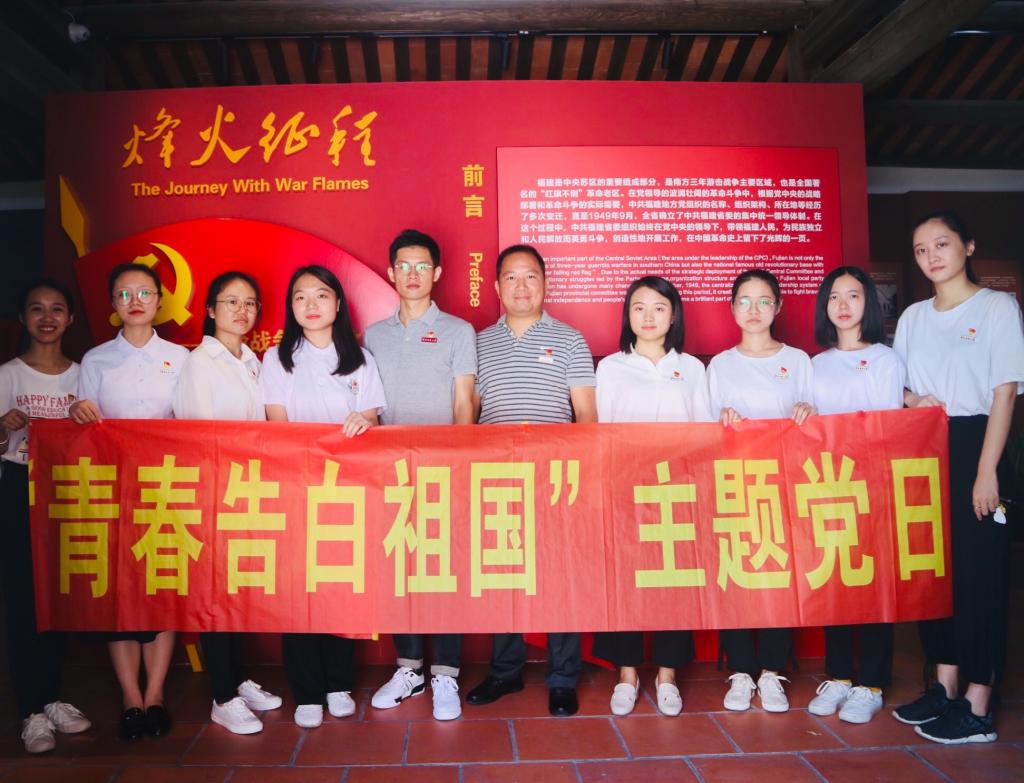 9月25日上午10点,员工第六党支部开展“青春告白祖国”主题党日活动,党委副书记谢斌斌全程参与。在公司红色教育宣传板块前,支部党员手持“我爱你中国”“此生无悔入华夏”等爱国标语合影,以青春的声音告白祖国,以青年的名义为祖国庆生。师生党员一同参观中共福建临时省委旧址,重温红色记忆。在交流会上,谢斌斌希望同学们珍惜当下的美好时光、守护来之不易的和平,作为新时代的老员工党员,要始终牢记自己的初心与肩负的历史使命,心系国家,增长本领,不懈奋斗,书写精彩的人生篇章。随后,支部党员朗诵爱国诗篇《我的祖国》《我爱这片土地》《我爱你中国》,用诗意情怀深情地倾诉对祖国的热爱,抒发在新时代担当新使命、实现新作为的信心与决心。