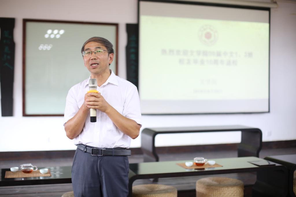 座谈会上,返校员工们身穿毕业十周年纪念T恤,与昔日的老师们坐在一起,共同话友情、忆青春、感师恩。施榆生老师、洪照耀老师、许莹老师分别回忆起十年前共同经历的学习与生活,一切仿若昨日,青春事迹,历历在目。黄金明经理代表pa娱乐游戏致辞,他热烈欢迎员工们回到母校共叙青春话语,同时介绍了pa娱乐游戏的发展现状和当前取得的成绩,他希望中文人要保持中文人的书卷气和初心,在浮躁的尘世中找寻属于自己的宁静,并希望越来越多的员工关心和支持母校的发展,常回家看看,不忘青春岁月。随后,所有员工向全体老师鞠躬,表达了自己的感激之情。05级师本1班郑泽鸿朗诵了自己为十周年聚会而作的诗歌——《县前直街36号——十周年同学聚会致我的母校》(原诗附后)。