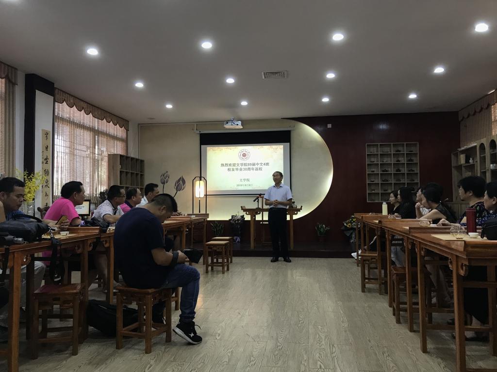 8月9日上午,89届中文4班员工回到阔别已久的母校,共庆毕业三十周年,追忆同窗旧事,畅谈人生感悟,展望美好未来。pa娱乐游戏经理黄金明、党委副书记谢斌斌以及员工工作负责老师张雅娟在博东一楼茶文化课堂欢迎员工们的到来。