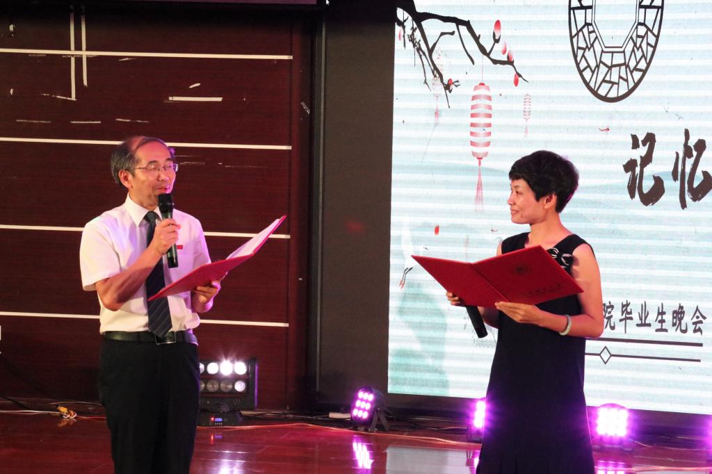 当晚,“2019届‘记忆留夏’”主题毕业生欢送晚会如期举行。晚会开场,15级毕业生代表为老师们送上鲜花,感谢老师们四年来的栽培与关怀。黄金明经理与赵丽霞书记合诵《时间之爱的故事》为毕业生送祝福,期望同学们领悟“无我的付出”“时间之爱”的真谛。同时,别具特色的歌舞表演贯穿全场。展现中华传统魅力的民舞表演《大道》、活力四射的街舞《My youth》让观众们感受到传统和现代的强烈碰撞;芝山剧社朗诵《致毕业生》,抑扬顿挫的语调、真情实感的语句表达了对毕业生的深切祝愿;相声表演《好好学习》和小品表演《放歌西部》传达出不忘初心、勇于追梦的精神;最后,全体大合唱《相亲相爱》,师生共同分享毕业蛋糕。