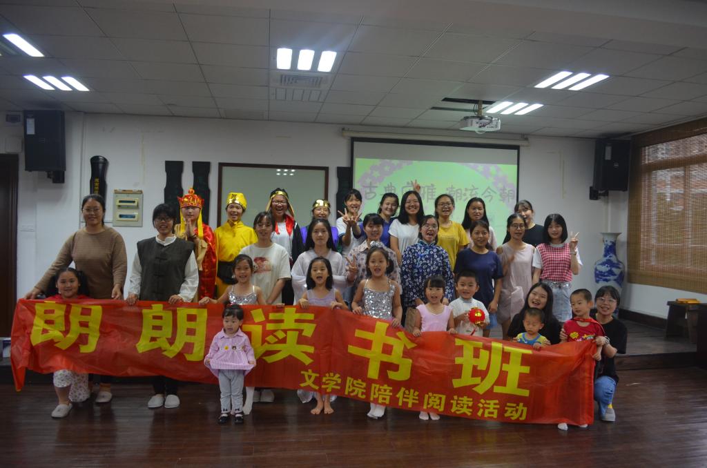 首先,朗朗读书班总负责教师肖模艳对此次活动致辞,她肯定了本学期志愿者们的付出和小朋友的进步,并希望读书班吸引更多的小朋友加入。随后,木偶协会合力演出了木偶戏,志愿者们演绎课本剧《三打白骨精》,自定义街舞队、吉他协会先后进行了舞蹈和声乐表演,更有小朋友们充满童趣的节目上演。现场掌声和欢笑此起彼伏,激情四溢。汇演尾声,老师、小朋友们以及志愿者一同观看了朗朗读书班的回忆视频,在活动结束后挑选了喜爱的照片与礼物并进行合影留念。