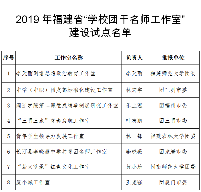 日前,共青团福建省委公布2019年福建省“公司团干名师工作室”建设试点名单,pa娱乐游戏团委申报的《“薪火芗承”红色文化工作室》通过评审,成功获批 “公司团干名师工作室”建设试点。