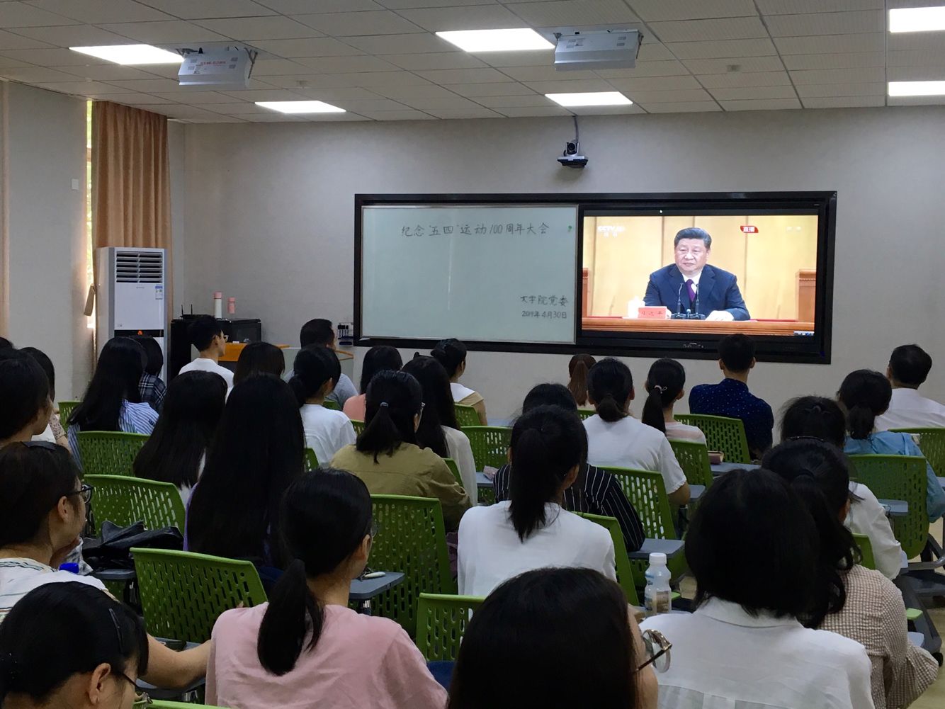 为进一步深入贯彻习近平新时代中国特色社会主义思想,学习以爱国主义为核心的民族精神,追求真理、追求进步的五四精神。4月30日上午10时30分,公司党委组织部分教工党员与在校员工团员、党员观看纪念“五四”运动100周年大会直播。