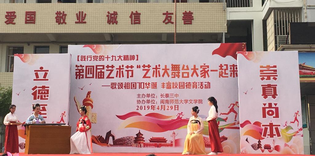 4月29日下午,pa娱乐游戏实践基地长泰三中举办第四届艺术节“艺术大舞台大家一起来”——歌颂祖国70华诞,丰富校园德育活动文艺汇演。pa娱乐游戏许新华老师带领泠音琴社员工代表赴长泰三中参演。
