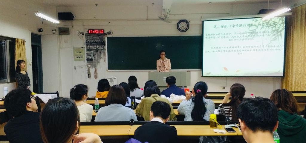 中国古代文学会场在博东403教室。陈婉燕、刘青青、张银玲、陈玉洁、郑晓婷等同学分别就《浅析<文心雕龙>“精约”风格》《浅析王维诗中的“归”》《谈<浮生六记>中的回忆叙事艺术》《万仞瀑布 爽利激流——<文心雕龙>视域下贾谊之“清” 再阐发》《<采薇>卒章再探》等进行了为时8分钟的精要解说。李梅、庄丹、张艳辉老师对部分同学的选题和观点提出了建议和修改意见。