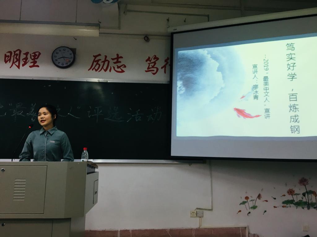 “最美中文人”评选活动自启动以来,各班级积极宣传,深入挖掘各位员工典型,最终推荐来自16、17、18三个年级共8名候选人参选。现场宣讲期间,同学们通过精美的文案设计、有趣的视频拍摄全方位地展示自己在学业、社会工作、实践工作等各个方面的收获和感悟。经过激烈角逐,16级汉语言文学(师范)3班陈圆云、17级汉语言文学3班廖冰青、17级汉语言文学(师范)3班欧德英分别获得本次评比的一、二、三名,被评为“最美中文人”励志校园先锋人物,其余5人获得“最美中文人”提名奖。