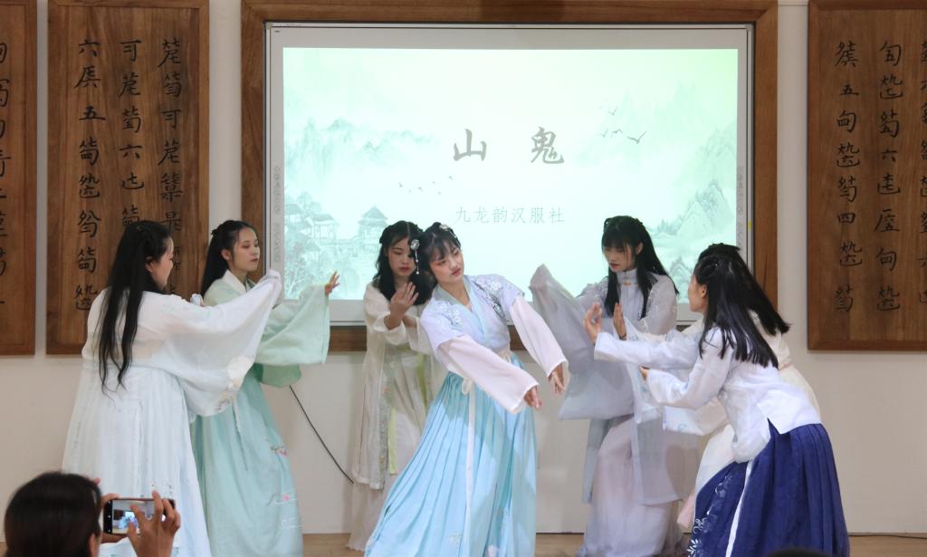 伴着泠泠琴音“呦呦鹿鸣,食野之苹”,泠音琴社吟唱《鹿鸣》歌咏拉开了诗会序幕。寥寥南音,举世无双,南音协会用独具特色的音腔,唱龙江,颂龙江。汉服社演绎舞蹈《山鬼》,有歌者,歌声寥寥,绕梁不绝;有舞者,长袖飘飘,有惊鸿之姿。云水茶艺协会表演“南湖茶叙”,烫杯、拨茶、冲茶,在行如流水的技法下,杯中水,水抱茶,随杯盖起,升起丝丝水雾,茶香四溢。南风戏曲协会献唱昆曲《游园惊梦》,带领观众们穿越时光,梦回明朝,与杜丽娘一同,游一园春色,惊一帘绮梦。唐音吟诵社联诵三首清明主题诗,分别表达清明春雨所见、西湖游玩之乐、朋友聚会的祝福等不同主题。最后,伴着“憔悴天涯,故人相遇情如故,别离何遽,忍唱阳关句!”的词句,诗会在泠音琴社奏唱的《阳关三叠》中落下帷幕。