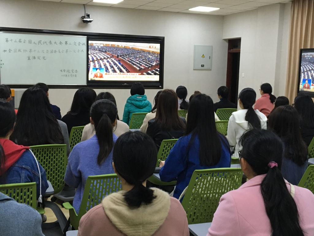 pa娱乐游戏认真组织师生自主在家、宿舍、食堂、科技楼一楼观看“两会”直播、转播、录播,密切关注会议进程,了解“两会”实况和相关报道。