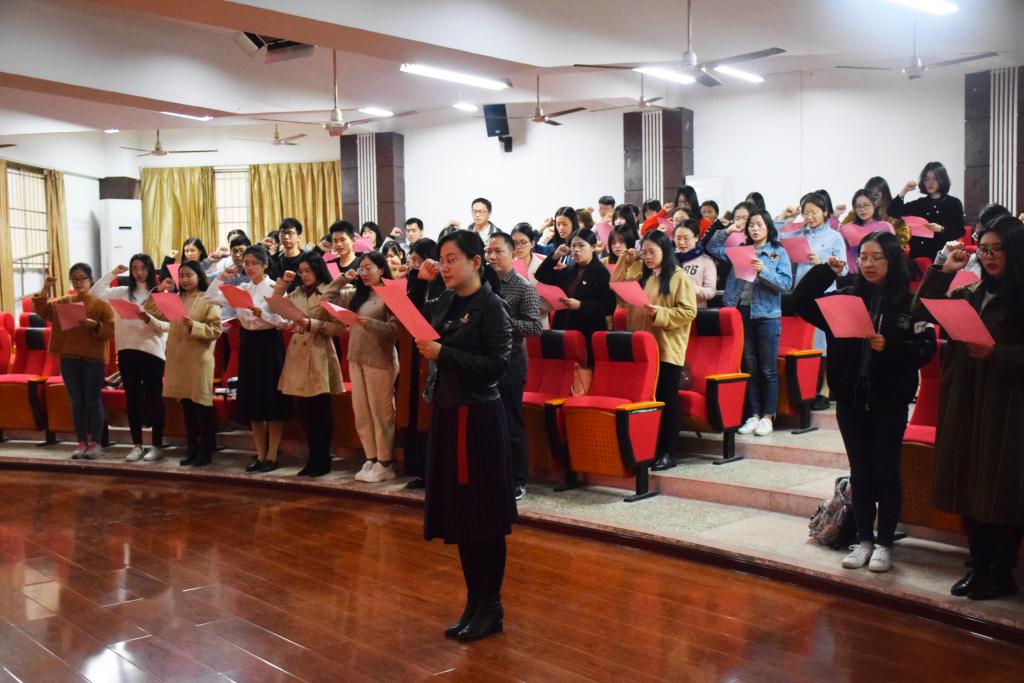 宣誓仪式在庄严的《义勇军进行曲》中拉开序幕。首先,新党员代表16级的翁碧娇同学做了发言。她表示十分荣幸能够成为一名光荣的党员,自己一定会不忘初心,恪守在党旗下的宣誓,在今后积极学习廉洁文化精神,树立社会主义荣辱观,努力成为一名优秀共产党员。在党委组织员林枫同志的领誓下,近100名发展党员进行了入党宣誓。举起的右手、口中的誓词、坚定的眼神,短短一百多字的誓词刻入了每一个人的心里。接着,党委副书记谢斌斌老师发表致辞,他对每位党员提出了四个期望。第一,作为新时代的员工党员,应该要坚定理想信念,坚定党的立场。其次,员工党员要积极带头营造廉洁奉公,诚信守法的校园氛围。并且员工党员应当把握好底线和红线,树立廉洁观念,践行廉洁行为。新时代机遇和挑战并存,员工党员要敢于挑战自己、把握机遇,更应守住底线。最后,他表示,员工党员要充分发挥先锋模范作用,展现出中文人的情怀和闽师人的风范。最后,宣誓大会在《国际歌》中圆满结束。