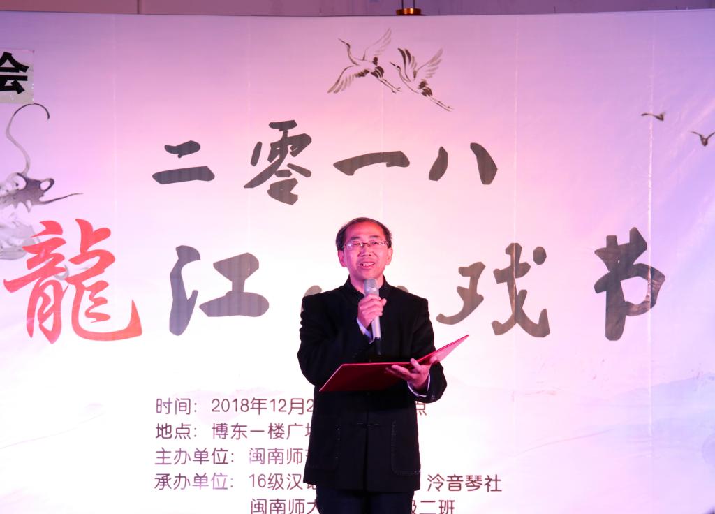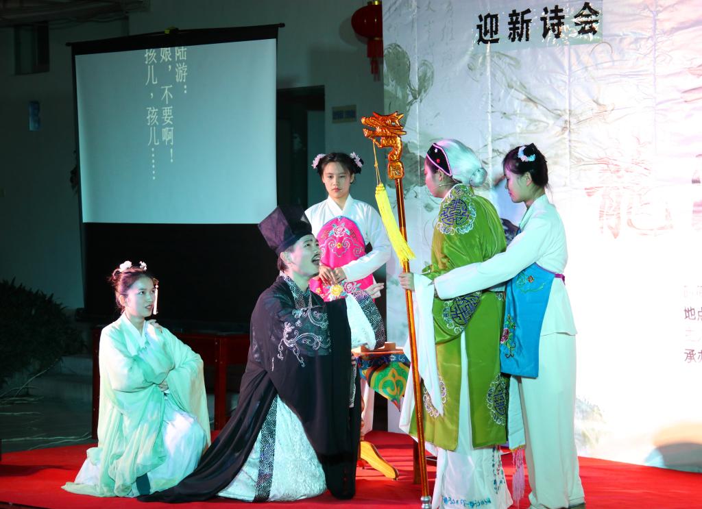 12月28日晚,由pa娱乐游戏主办,16级汉语国际教育班、泠音琴社、闽南师大附小五年级二班、云水茶艺协会和唐音吟诵协会承办的“龙江小戏节”暨迎新诗会在博东一楼举行。pa娱乐游戏经理黄金明、党委书记赵丽霞及部分员工家长、pa娱乐游戏众多师生一同观看演出。