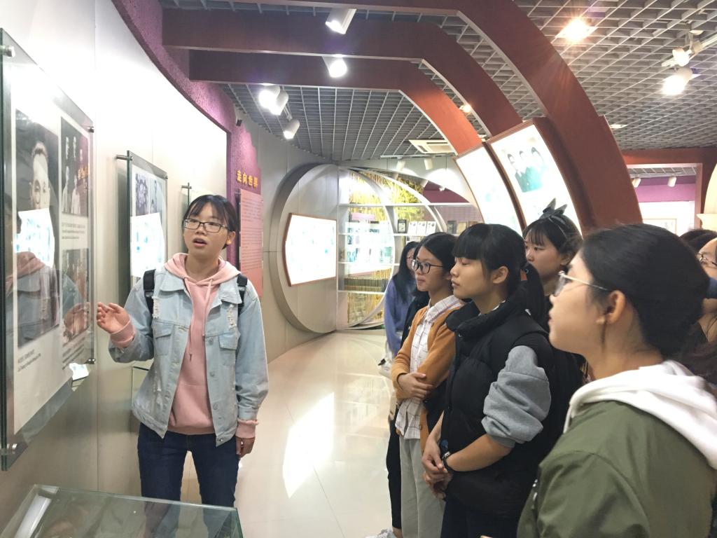参观分两队进行。一队先参观纪念馆后前往故居,另一队则先前往故居后参观纪念馆。在林语堂纪念馆,首先面向来者的是林语堂雕像,手握烟斗的语堂先生迎接来访参观者。纪念馆分为两层,在第一层中,老师和同学们参观了一些林语堂先生生前用过的物品及其家乡的风景图,从墙上的图片、文字和志愿者的讲解中了解到林语堂先生从“山乡孩子”到“负笈欧美”,从“风华正茂”到“走向世界”的经历。在纪念馆第二层来访者也了解到林语堂先生的爱情故事和伟大成就。从“归根之恋”到“语丝猛将,幽默大师”,从“东方智慧,生活艺术”到“桑梓情深,泽披后人”。此外,志愿者还介绍了林语堂先生的明快打字机、英汉汉英词典等发明创作以及一些文学作品和成就,让参观者们对林语堂先生有了更全面、更深刻的了解。在林语堂故居,首先见到的也是手握烟斗的林语堂蜡像坐在书房里欢迎来者,蜡像逼真生动。从书房到卧室、客厅、餐厅依次参观,观看了记录林语堂先生生平的电影,学习到林语堂先生生活的哲学。