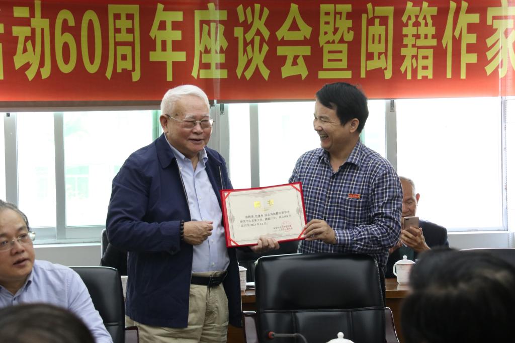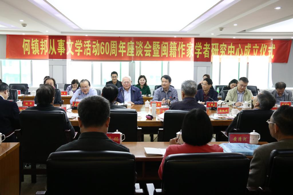 成立仪式后,举行了何镇邦从事文学活动六十周年座谈会暨新书首发式。何镇邦两本新书《追问生活》《昔日风景看不尽》获得了专家学者的高度评价,在闽南师大校园内掀起了阅读热潮。