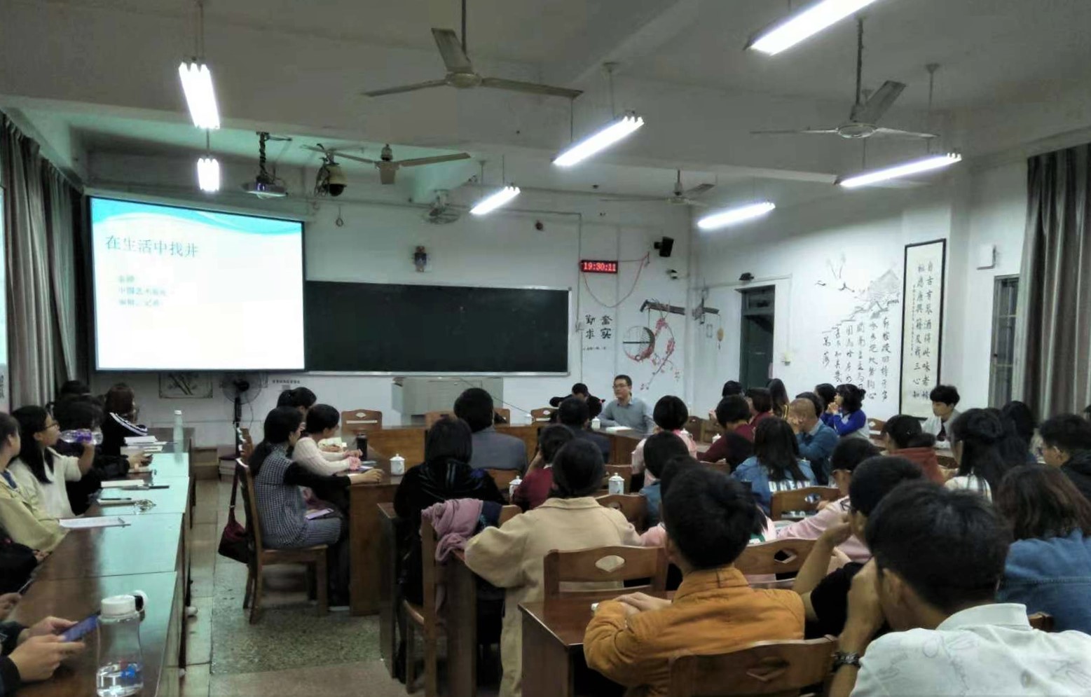 12月1日晚上,《中国艺术报》理论副刊部副主任金涛老师应公司邀请,在博东108教室为pa娱乐游戏师生开讲了主题为“在生活中找一口井”的精彩讲座,本次讲座由肖魁伟老师主持。出席本次讲座的还有漳州市文学艺术院、漳州市闽南风杂志社成员。