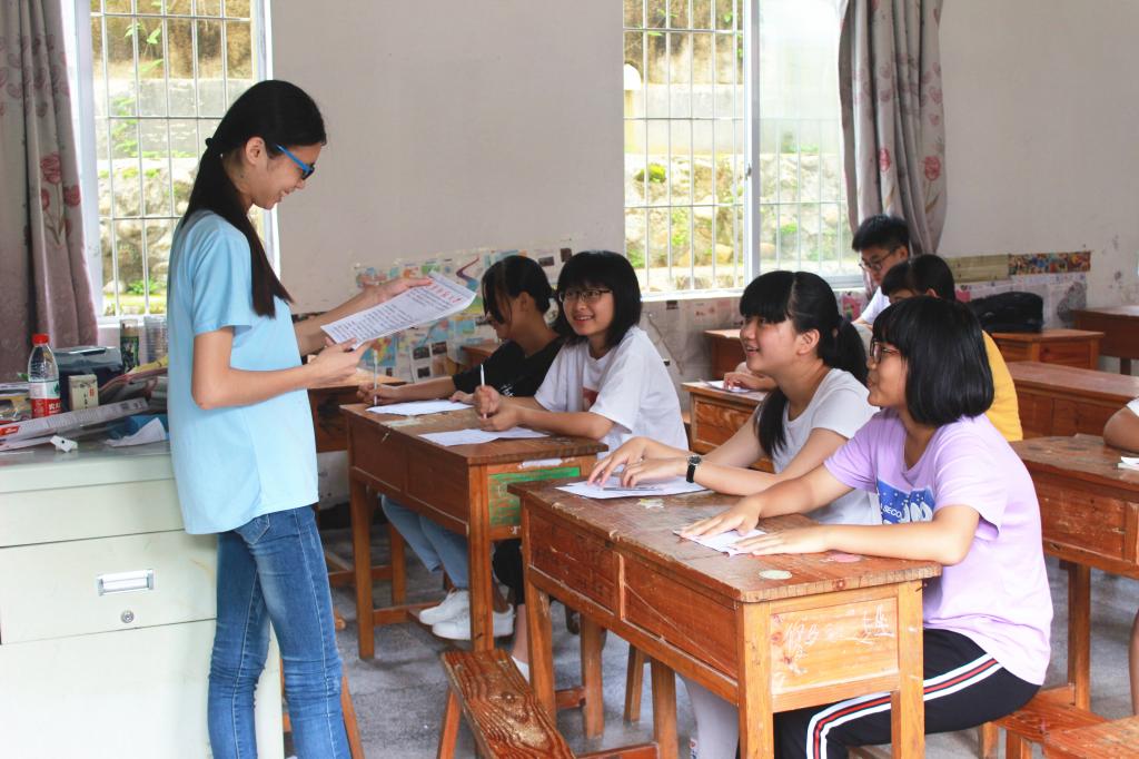 为巩固教学阶段学习成果,实践队于9月再次前往枋洋中学,检查孩子们暑期普通话学习情况,答疑解惑。此外,实践队与枋洋中学搭建了网上学习平台,突破时空的限制,帮助孩子们解决学业之疑、生活之惑,将“推普脱贫攻坚”进行到底。