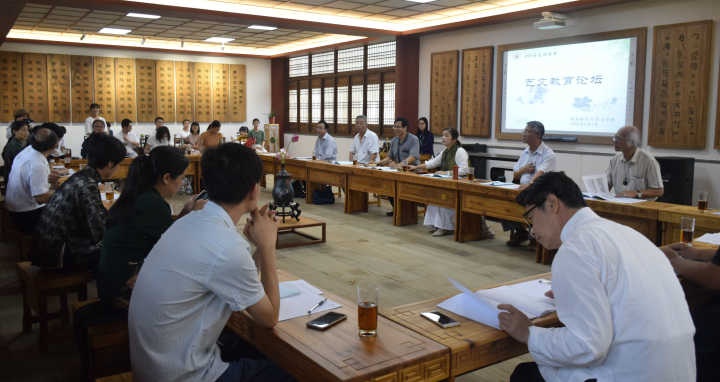 下午,艺文教育论坛在龙人古琴文化村举行。论坛由台湾明道大学国学研究中心主任罗文玲主持。与会嘉宾围绕艺文教育展开了热烈讨论,pa娱乐游戏经理黄金明强调艺文教育是一个过程,老员工应掌握内化于心、外化于形的学习方式,从而构筑一种以文会友、以趣相投的交往世界。沈金耀深入分析开展传统文化艺能教育的原因,并提出艺能教育应该回归人文教育、重视基本文化技能、培养书画研究人才。陈瑞松以pa娱乐游戏官网附小四年二班的创意戏剧比赛为例,介绍了自己关于艺能教育的扎根与推广的心得。其他嘉宾也都分享了艺能教育的心得。