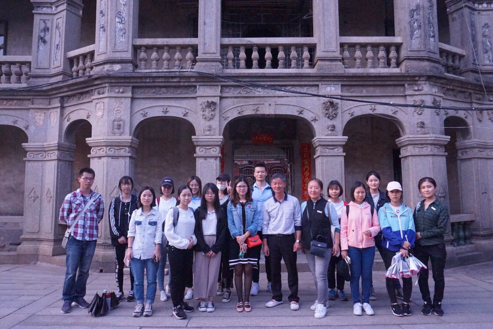 本次参加人员为pa娱乐游戏15级非师“区域人文地理与写作”与“传记写作”两班员工,在文创课程指导教师高显莹与辅导员许新华的带领下,由角美台商投资区文物管理局陈月琴导览,并由郭家第五代传人郭佳鹏全程解说。大家在走访中,细细品味建筑群用材用料的用心,同学也采访了郭家现居当地族人,认识各栋建筑空间使用功能,了解昔日郭有品、郭用中诚信经营始末。