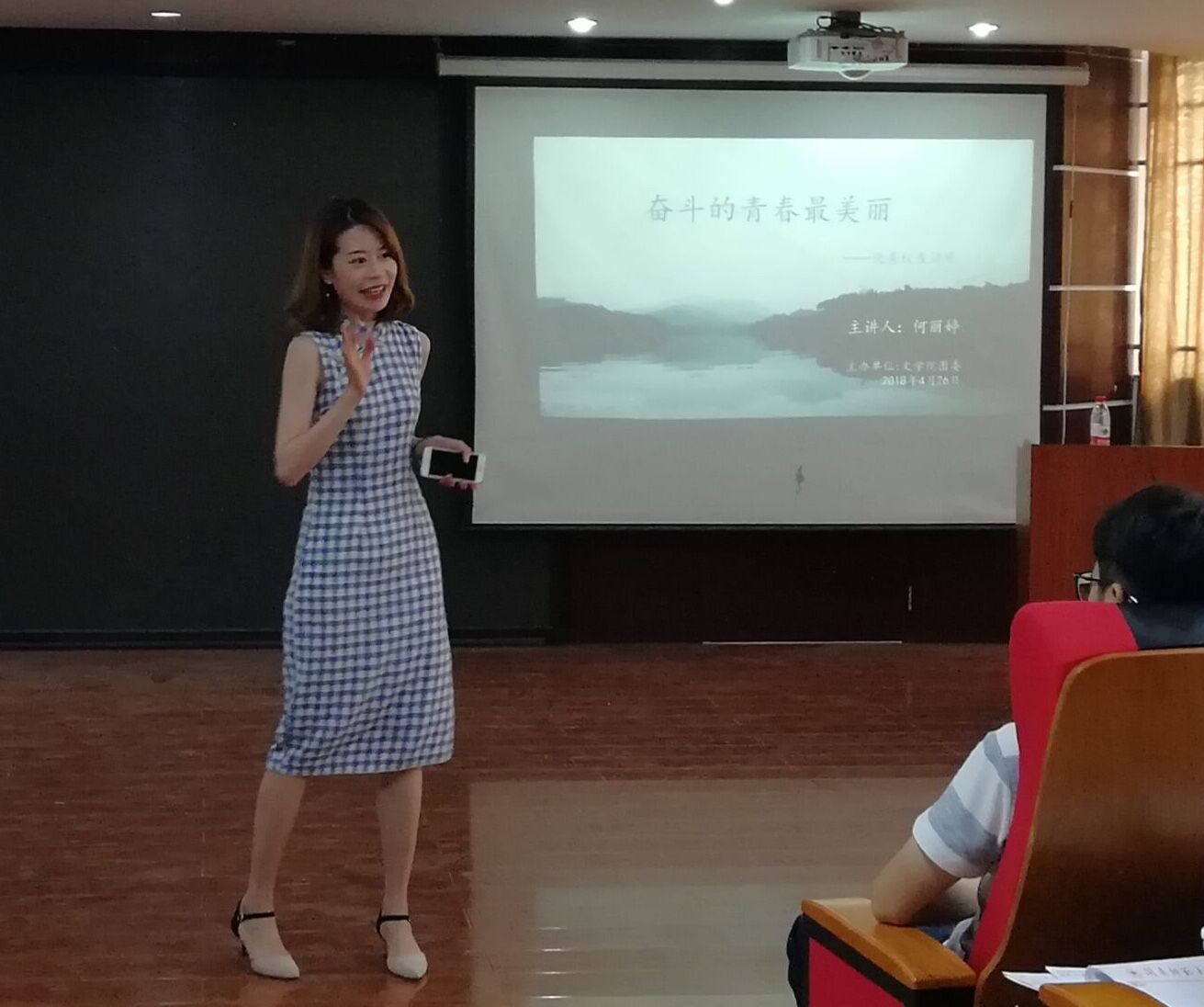 4月26日,pa娱乐游戏2015届员工何丽婷返校交流。