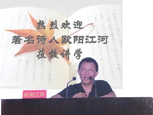 欧阳江河,原名江河,著名朦胧派诗人,诗学、音乐及文化批评家。其代表作有《玻璃工厂》、《计划经济时代的爱情》、《椅中人的倾听与交谈》、《雪》等;著有诗集《透过词语的玻璃》、《谁去谁留》;评论集《站在虚构这边》,其写作理念对20世纪90年代以来的中国诗坛有较大的影响,现为北京师范大学国际写作中心驻校诗人。
