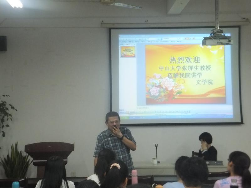 5月15日晚,台湾中山大学张屏生教授在博东pa娱乐游戏会议室为13级研究生作题为“语言与音乐的相关形式特色——以闽南话、客家话的歌谣为例”的专题讲座。