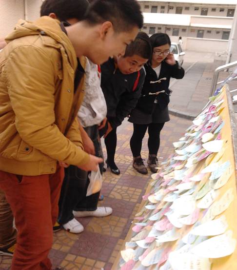 女生节许愿墙以“女生写心愿,大家帮实现”的宗旨,面对八百多张心愿纸,同学可以帮助许愿同学实现许愿纸上的心愿,为了尽可能帮助更多的人实现愿望,部分余下心愿由中文系员工会以抽奖的方式帮忙实现,为女生节许愿活动增添许多乐趣。