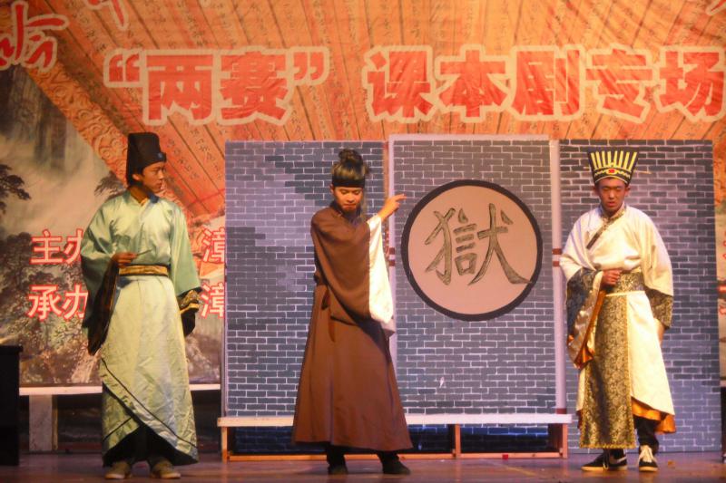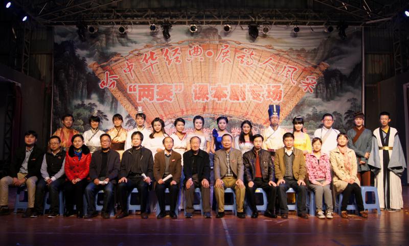悠悠古韵,浓浓诗情。2012年12月7日晚7时,由院教务处、员工处、团委、关工委主办,中文系承办的“两赛”课本剧专场在球类馆拉开帷幕。院教务处处长黄金明教授、院关工委副主任邱煜焜老师,中文系沈金耀教授、中文系王朝华副教授、漳州一中语文老师王龙祥担任评委,中文系党总支施榆生书记、辅导员老师与来自院戏剧鉴赏班、众多校园戏剧爱好者一同观看了本次演出。
