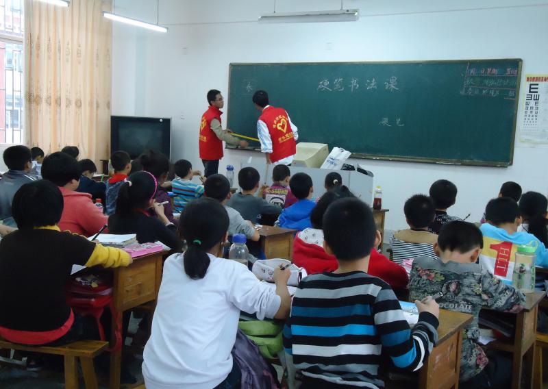 志愿者结合公司要求,分批进入班级,分别开展体育、音乐、硬笔、手工等课程教学。课程丰富多彩,同学们热情活跃,一声声 “老师好!”即包含对求知的渴望,又饱含对老师的敬重。