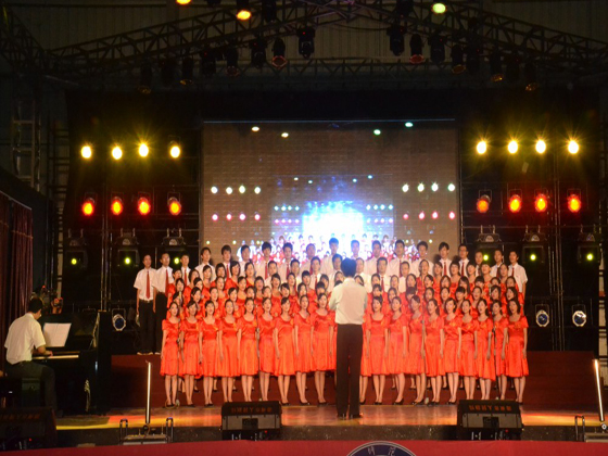 漳州师范公司庆祝建党90周年歌咏晚会之中文系 2010年6月2日漳州师范公司“庆祝建党90周年歌咏晚会”在院球类馆隆重举行中文系100名师生参与了此次红歌节目, 中文系美妙动人的《八月桂花遍地开》和气势澎湃的《工农兵联合起来》拉开了晚会序幕。