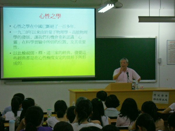 当晚8时,宋教授在博中109室与中文系教师、研究生、本科生进行了一场名为“科学、心性、道德经”的精彩讲座,得到了在座师生的一致好评。在讲座中,宋教授将现代科学与心性觉知巧妙结合起来,并以全新的学术视角、缜密的逻辑思维深入浅出地诠释了《道德经》内在的玄妙。其所一一阐述的道的性质、认知的基本方法和心态等都给我们以诸多方面的启迪,让我们对传统到家文化认识有了一种较为全面而深入的拓展。特别是在这次讲座中,宋教授还结合获诺贝尔物理奖的全相原理,创造性地阐述了“道”的展现形式(信息波)。他认为心性之学与科学本没有道理要处于对立位置,甚至是不相容的局势。在“知者”的层面来说,两者都是认识外在世界的工具,并无高低、好坏之分。最后的提问环节,宋教授对同学们所困惑的问题进行现场答复,精秒而睿智的解答,又赢得同学们的热烈掌声.。通过教授的层层深入的剖析,使我们对《道德经》有了一些较新的认知。不仅感受到古人的非凡智慧,还激发了阅读经典的浓厚兴趣。