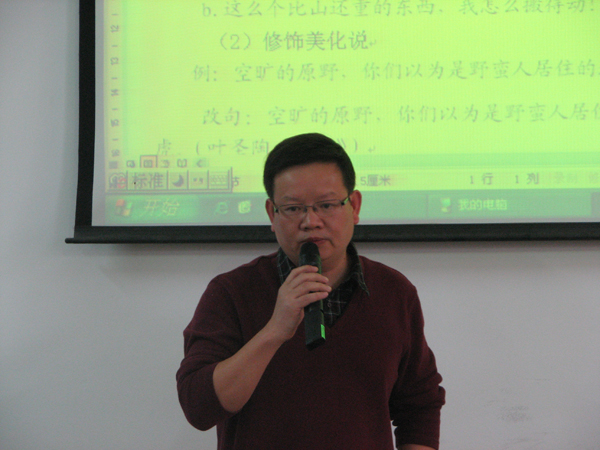 2010年12月13日下午,暨南大学华pa娱乐游戏副经理、博士生导师曾毅平教授应中文系系邀请,作了题为“修辞的多重属性及其研究形态”的讲座。中文系研究生和部分老师聆听了此次讲座。曾教授的讲座分四个部分:修辞观的发展,修辞的属性,修辞学研究的主要形态,修辞学研究的新形态——社会真实事件的修辞学研究。曾教授深入浅出的讲解、丰富多彩的例证、独特新颖的见解与听众精彩的互动,为本次讲座营造了活跃的学术氛围。讲座带来了学科前沿信息,使师生受益匪浅。整场讲座掌声不断,深受欢迎。