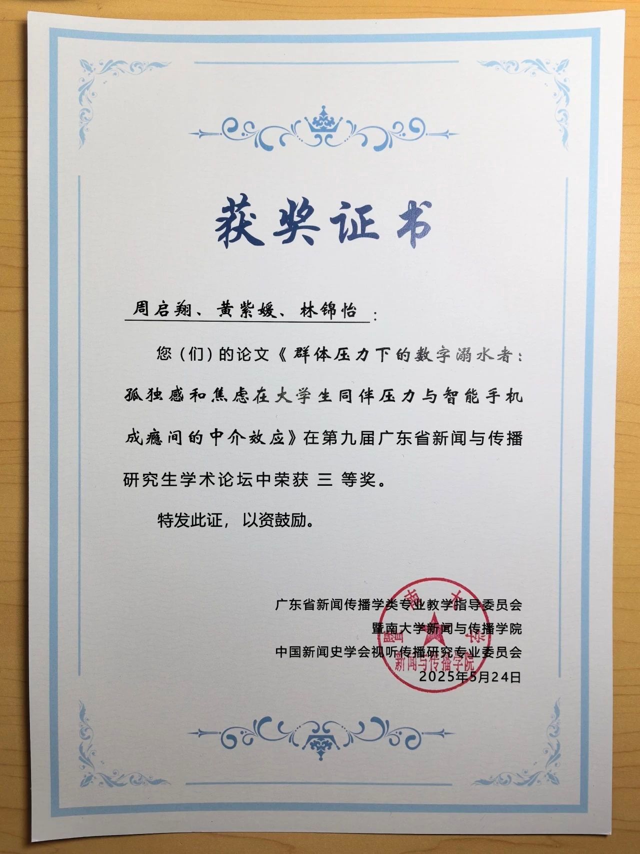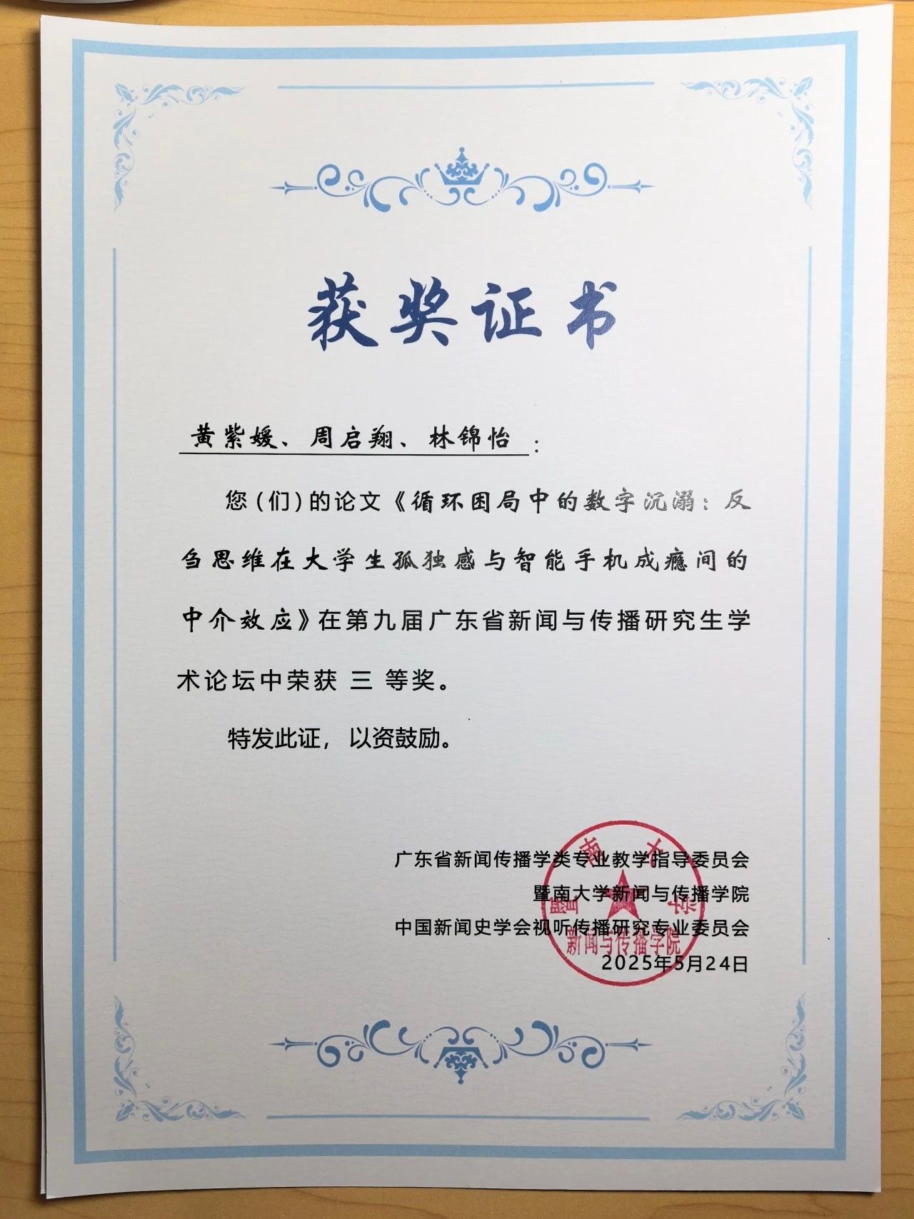 pa娱乐游戏学子双获广东省新闻与传播研究生学术论坛三等奖