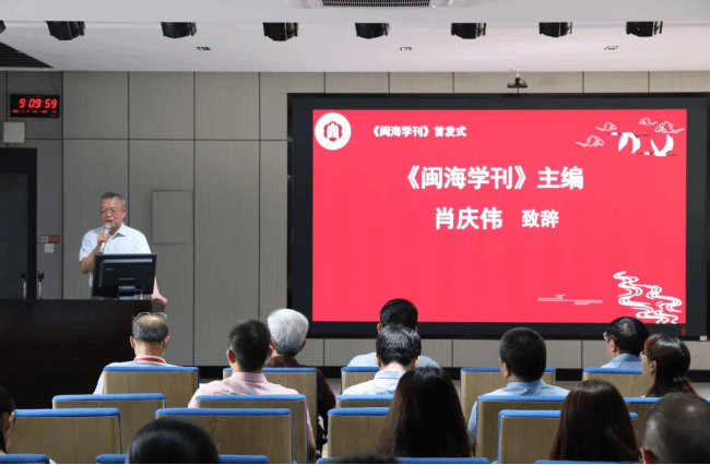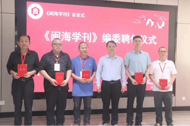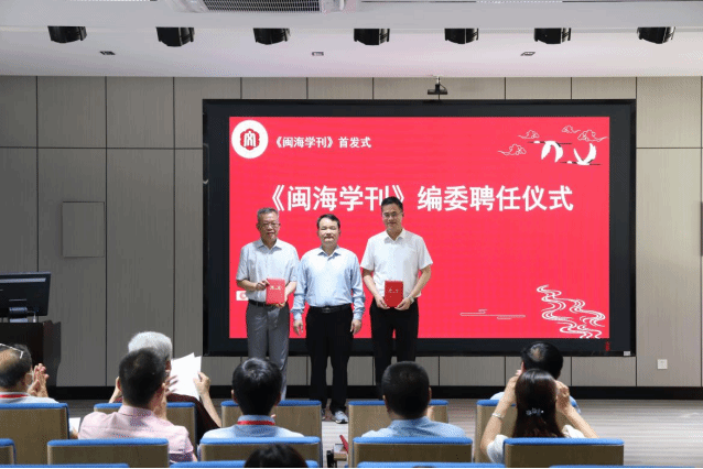 开幕式后,《闽海学刊》首发式正式启动。张龙海、《闽海学刊》荣誉主编林继中、肖庆伟、宋一明,共同为《闽海学刊》创刊号揭幕;张龙海依次为《闽海学刊》主编、副主编、校外编委、校内编委颁发聘书。