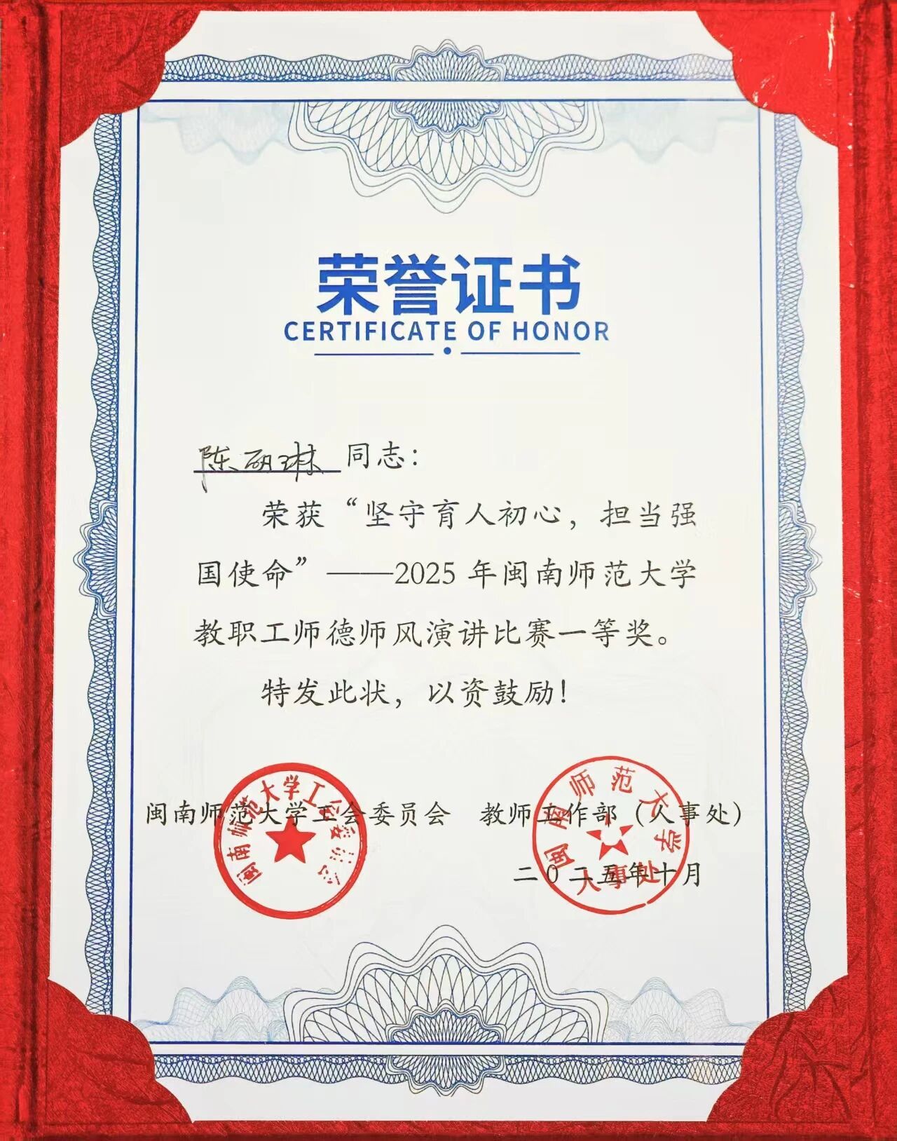 经过评委团专业严谨、公平公正的评审,陈丽琳老师最终脱颖而出,摘得一等奖桂冠。此次获奖,不仅是对陈丽琳老师个人师德修养与教学实践的高度认可,更集中展现了公司教师队伍爱岗敬业、潜心育人的良好精神风貌,为全院教师树立了学习榜样。