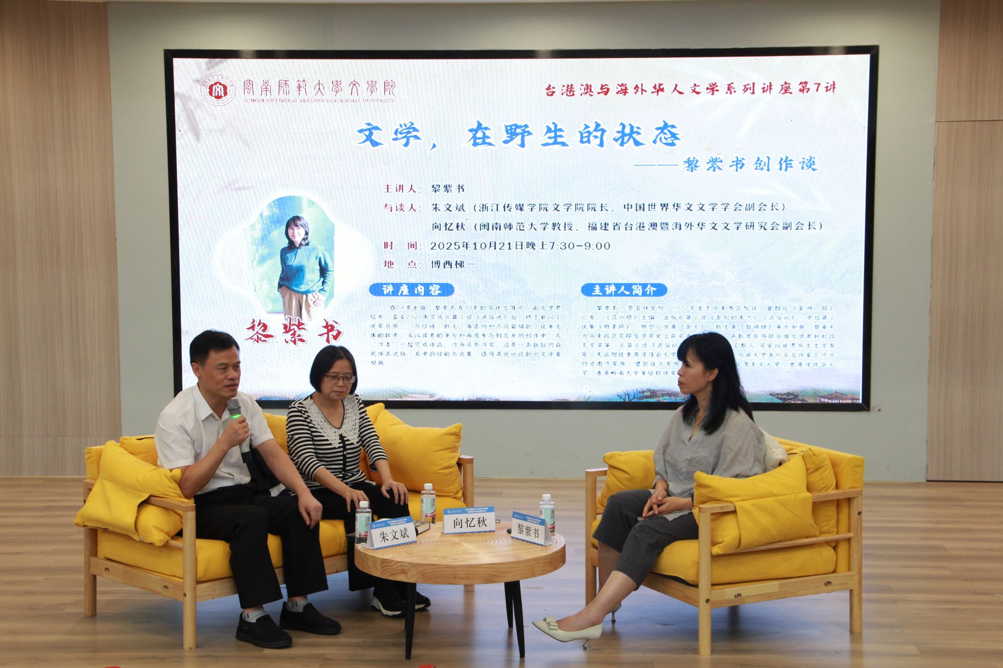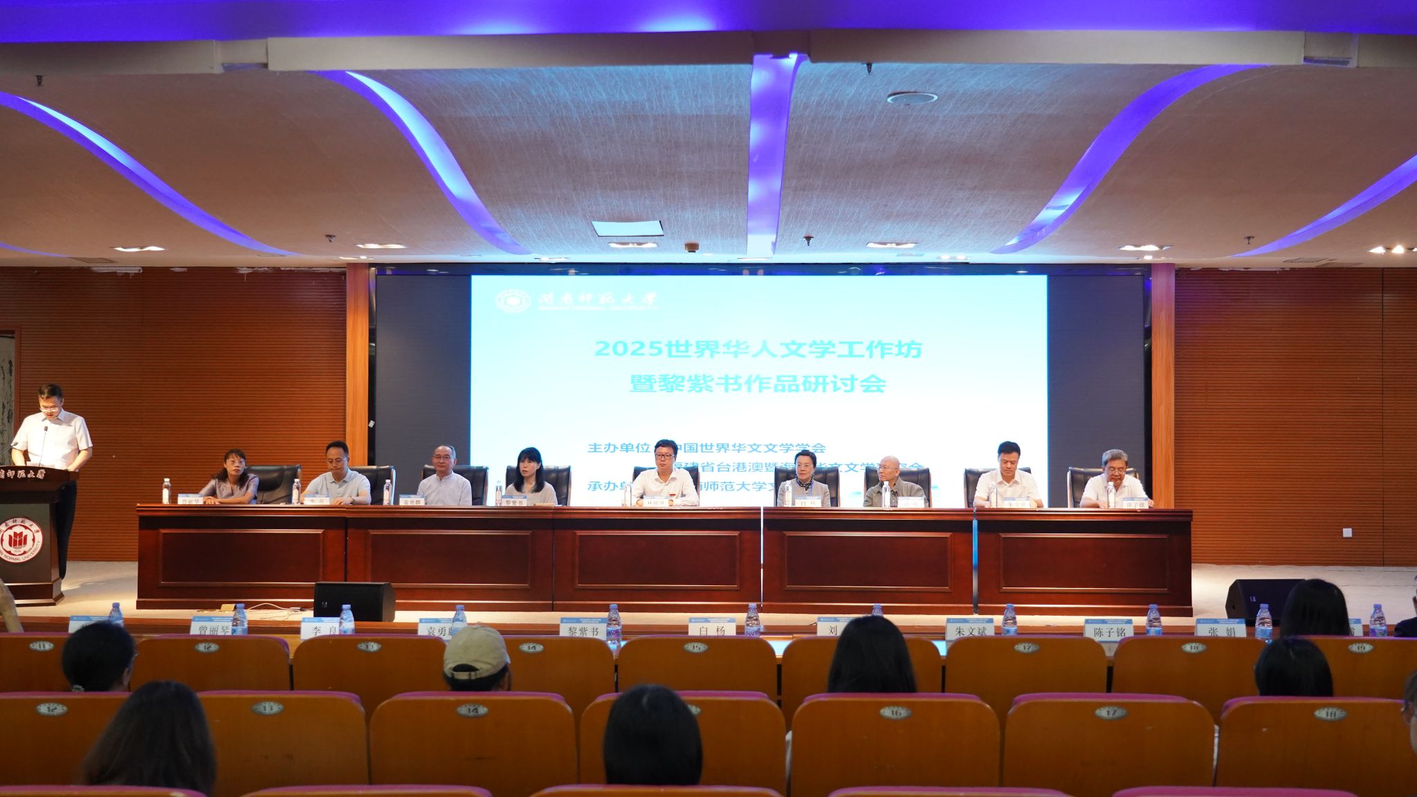 中国世界华文文学学会会长白杨、福建省台港澳暨海外华文文学研究会会长袁勇麟、《世界华文文学论坛》主编李良和福建省作协副主席陈子铭分别致辞。白杨表示,希望世界华人文学工作坊,成为一个开放、包容、深入、长久的学术对话平台。袁勇麟则肯定了公司在推动台港澳暨海外华文文学研究、建设世界闽南文化交流中心方面所做出的贡献。李良指出,此次研讨会不仅是对黎紫书个人文学成就的集中审视,更进一步探讨了世界华文文学如何在多元语境中持续拓展深度与边界。陈子铭表示,黎紫书的文学实践既扎根于特定的文化土壤,又始终保持着开放对话的姿态,在传承中华文化的同时不断构建新的文学空间。多位专家的致辞共同指向世界华文文学在传承中创新、在交流中深化的学术愿景。