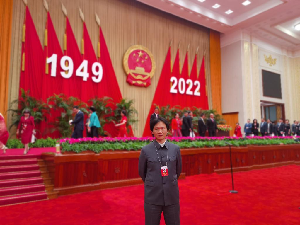 9月27日,pa娱乐游戏台湾教师张立本老师应邀参加由全国政协办公厅、中共中央统战部、国务院侨办、国务院港澳办、国务院台办、中国侨联在人民大会堂联合举行的国庆招待会,与近700名其他港澳台侨代表欢聚一堂,共同庆祝中华人民共和国成立73周年。