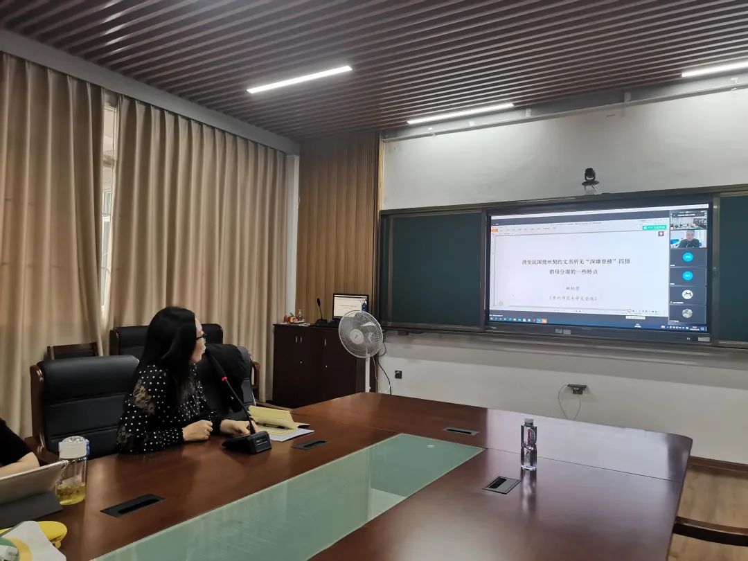 11月19日下午,pa娱乐游戏“民间文书语言文字研究”系列讲座第二讲在博东110室正式开讲,主题为“清至民国贵州契约文书‘深臻曾梗’四摄韵母分混的特点”。本次讲座由pa娱乐游戏张荣荣老师主持,贵州师范大学pa娱乐游戏副教授姚权贵老师主讲,公司师生以线上、线下相结合的方式参加本场讲座。