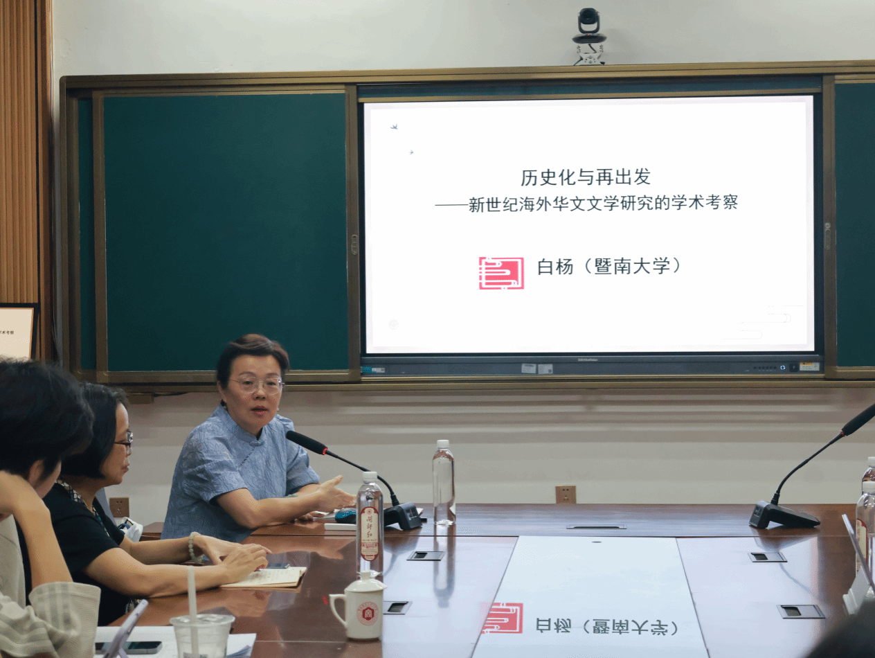 讲座伊始,白杨以八十年代台湾文学被误读为通俗文学,而后随着时代发展其重要性和严肃性终于被文学界看见这一现象,引出文学历史化的重要性。白杨指出,我们站在今天回望过去,那一时代台湾文学作为思想解放的排头兵被引进到大陆来,这在某种程度上起到了打开世界文学窗口的作用。于是华文文学就在台湾文学的历史化后进入人们的视野,特别是新世纪以来,海外华文文学的创作呈现了一种井喷式的发展热潮。传统上对于海外华人学的研究是按照区域板块来进行探讨,由此白杨概述了东南亚华文文学、北美华文文学、加华文学、澳华文学、日华文学和马华文学,对各地区华文文学代表性作家作品进行了介绍,她指出,在创作数量和创作成果方面,知名度比较高的通常被认为是北美地区,而实际上最先进入中国大陆研究者视野的是东南亚华文文学。虽然一些老派东南亚华文作家其后都进入了沉潜阶段,但随着近几年黎紫书等华文作家作品的爆火,又在东南亚华文文学圈掀起一股新的高潮。除此之外,加华文学中的薛忆沩也颇为白杨教授所赏识。