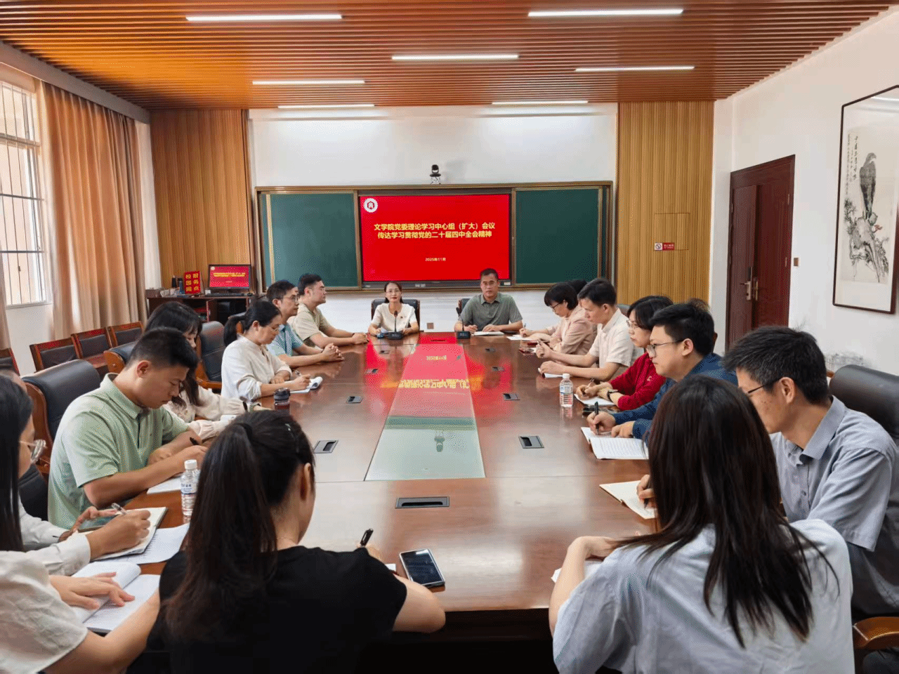 会上林晓领学了《中国共产党第二十届中央委员会第四次全体会议公报》及《中共中央关于制定国民经济和社会发展第十五个五年规划的建议》的丰富内涵与核心要义。