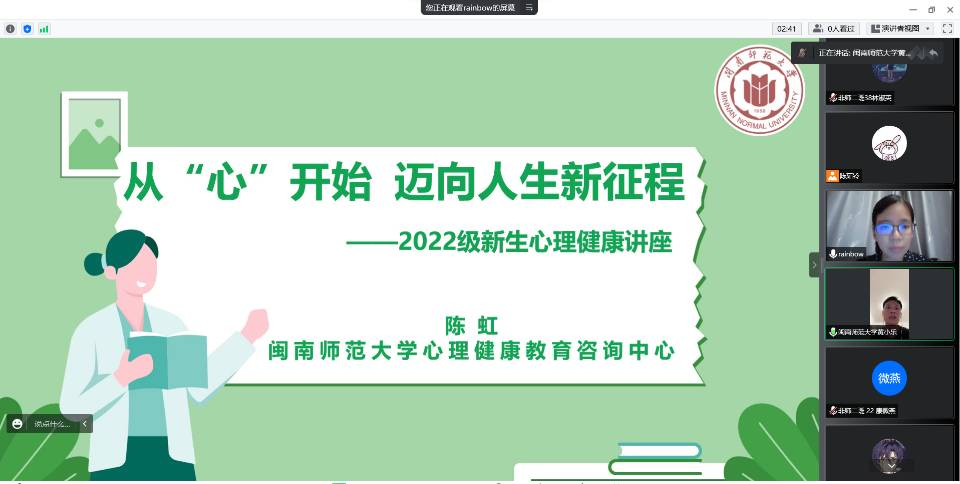 9月18日上午,pa娱乐游戏为2022级新生开展了一场“做最好的自己——我的大学我做主”的线上讲座,由pa娱乐游戏官网心理健康教育咨询中心的陈虹老师主讲,pa娱乐游戏团委书记黄小乐老师主持。